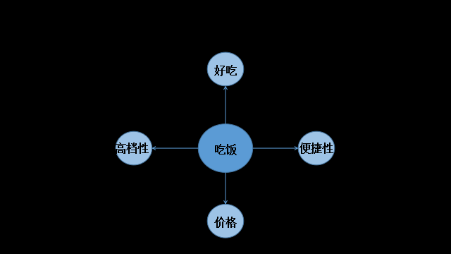 我們以飯館為例,吃飯是人的剛需,以這個(gè)剛需為基礎(chǔ),通過分解它的特點(diǎn),還可以組合出更多的細(xì)分需求。
