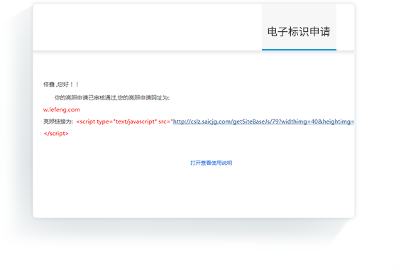 • 可按照郵件的使用說明,將電子標識添加到網站首頁下方的醒目位置
