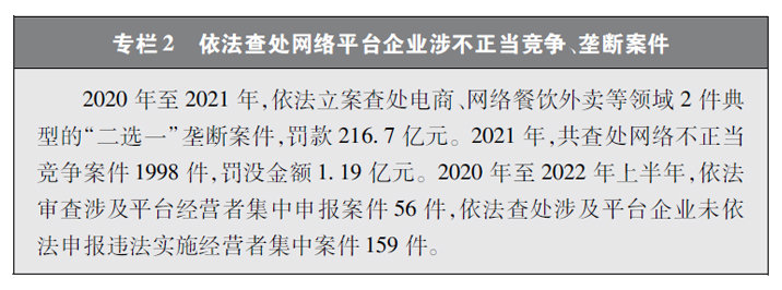 保障公平競爭的網(wǎng)絡(luò)市場環(huán)境。隨著網(wǎng)絡(luò)平臺企業(yè)不斷擴展自身的體量和實力,“掐尖式并購”、無正當理由屏蔽鏈接、“二選一”、大數(shù)據(jù)殺熟、流量挾持等妨礙市場公平競爭的問題也逐漸凸顯。中國積極回應(yīng)人民群眾訴求,在支持網(wǎng)絡(luò)平臺企業(yè)創(chuàng)新發(fā)展的同時,依法規(guī)范和引導資本健康發(fā)展,采取多種治理平臺競爭失序的執(zhí)法舉措。聚焦大型網(wǎng)絡(luò)平臺價格欺詐、低價傾銷等重點問題,通過行政約談、行政指導、規(guī)則指引等多種監(jiān)管手段,整治壟斷和不正當競爭行為。圍繞民生、金融、科技、傳媒等重點行業(yè),依法審查涉及平臺經(jīng)營者集中案件,防止可能妨礙市場競爭和創(chuàng)新發(fā)展的并購行為,引導網(wǎng)絡(luò)平臺企業(yè)增強合規(guī)意識,規(guī)范自身經(jīng)營行為。通過一系列行動,平臺經(jīng)濟市場環(huán)境不斷優(yōu)化,公平競爭的行業(yè)生態(tài)穩(wěn)步向好,中小企業(yè)獲得更廣闊的發(fā)展空間,統(tǒng)一、開放、公平、競爭、有序的網(wǎng)絡(luò)競爭環(huán)境正在形成。